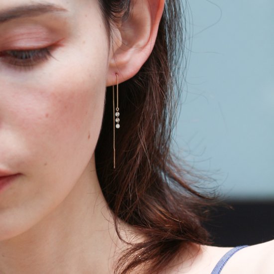 爪のないヌーディーダイヤモンドが3つ連なったロングピアス。