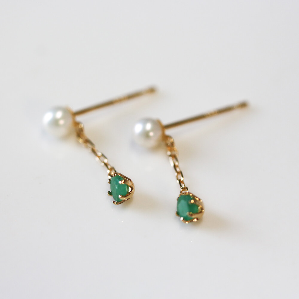 パール / カラーストーン チャーム ピアス | K18 〈エメラルド / ルビー / サファイア〉