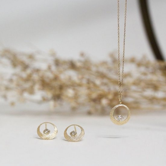 夜空に輝く満月と1等星のような明るい輝きを見せるフルムーンピアス。
