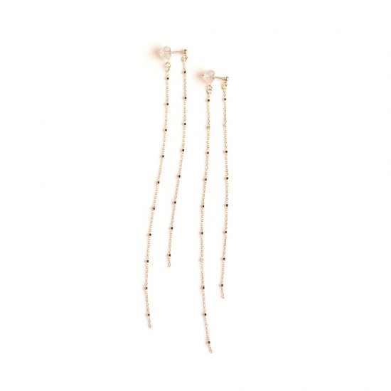 華やかなゴールドチェーンが前後で揺れるロングチェーンピアス。