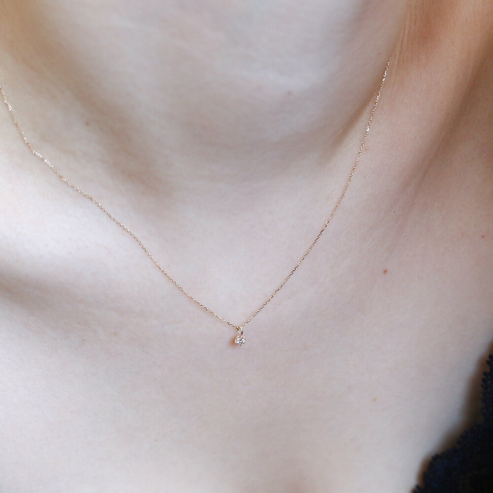 ダイヤモンドの存在感が引き立つ、一粒ネックレス。