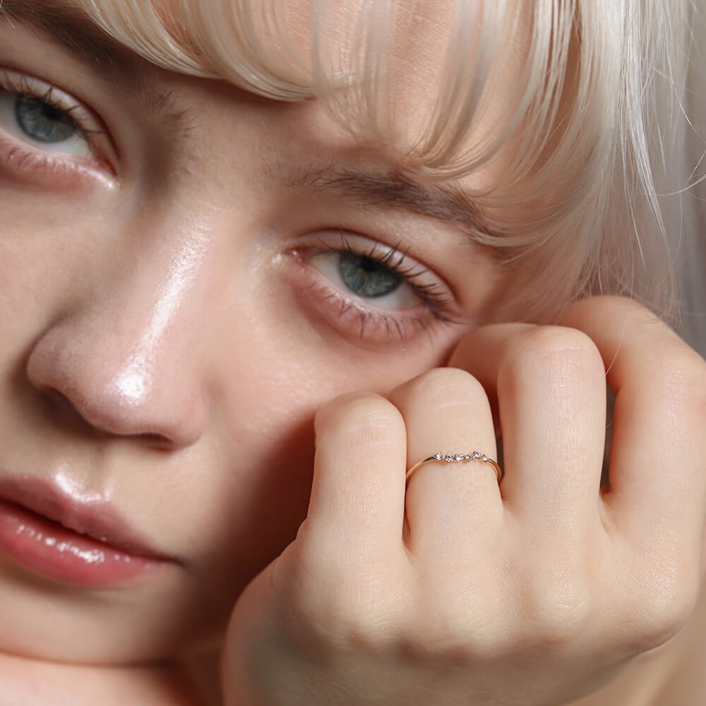 繊細なダイヤモンドを不揃いに配したリング。星座ジュエリーのような可愛さです。
