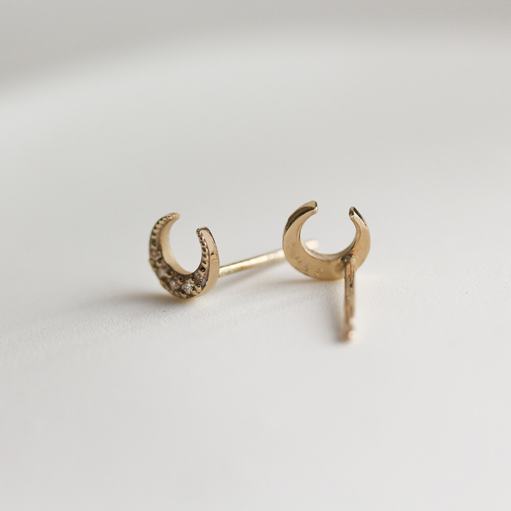 ダイヤモンド ムーン パヴェ ピアス | K10YG