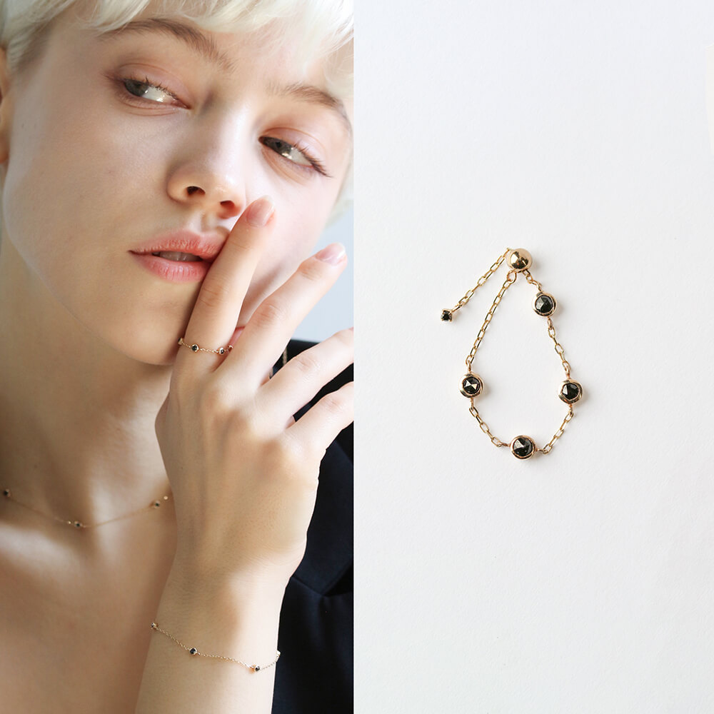 アジャスター先端には繊細なブラックダイヤモンドが小さく揺れ動きます。