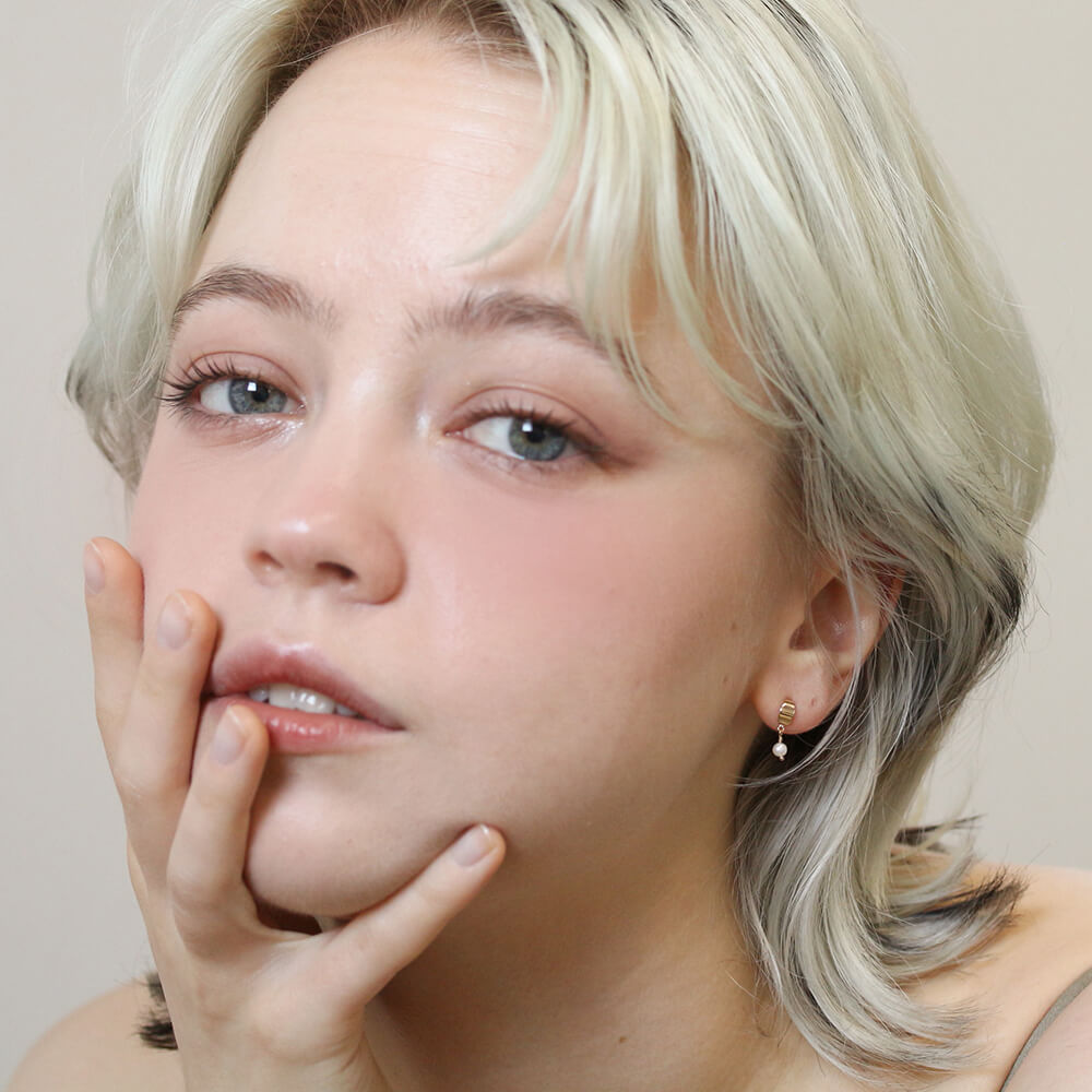 小ぶりなゴールドモチーフの下で揺れる姿が愛らしいパールピアス。
