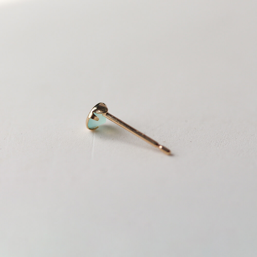ゴールドで縁取るよう留めており、石とのコントラストがシンプルに美しい。