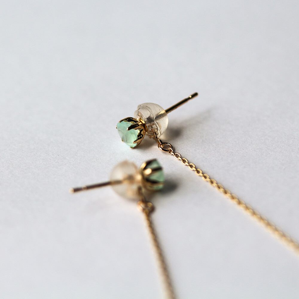 キャッチについているチェーンが、繊細な輝きで程良く存在感を放ちます。