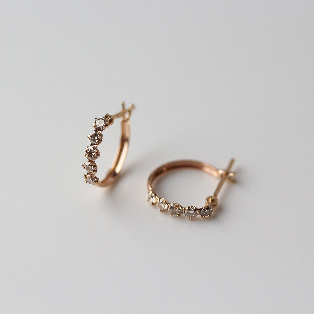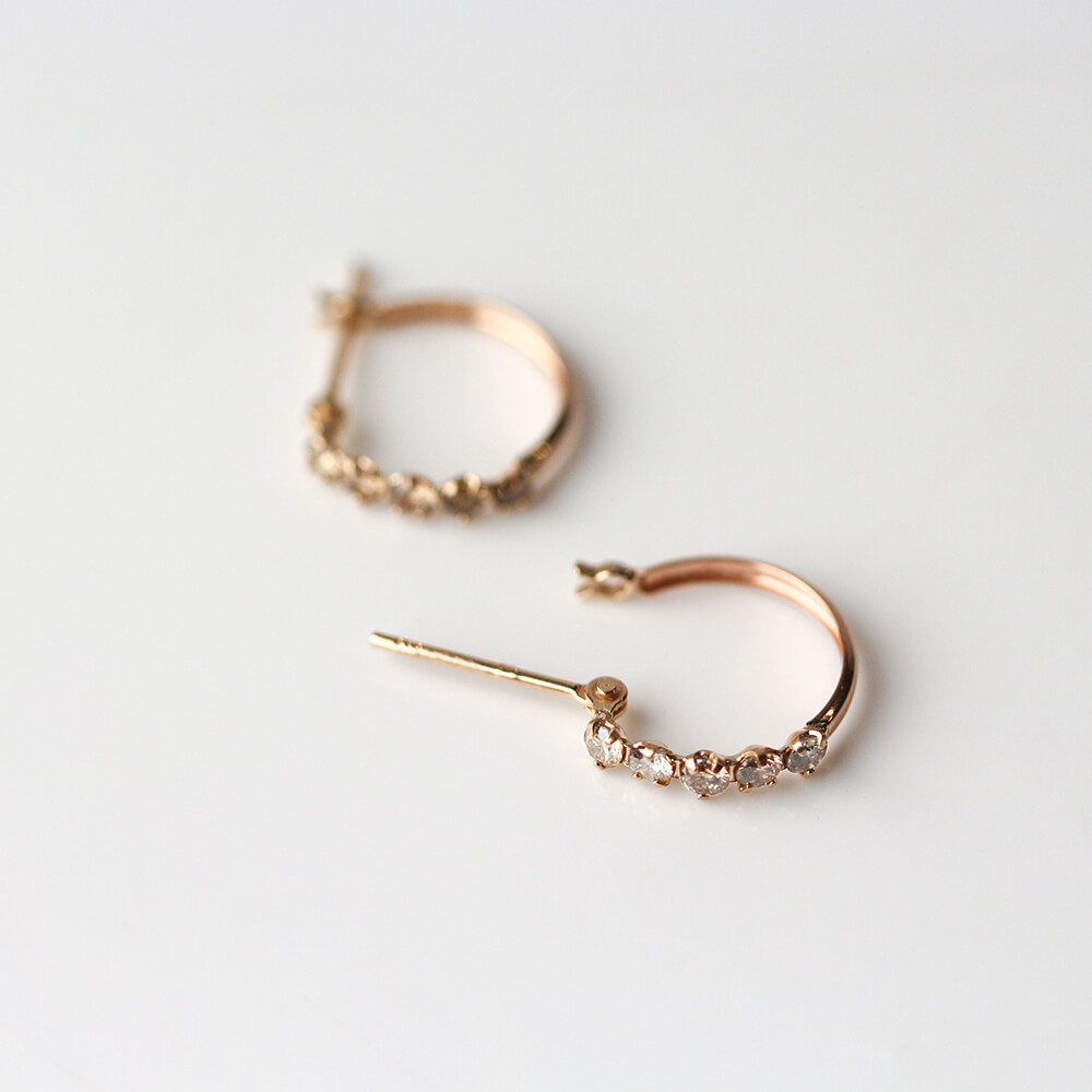 シャンパンダイヤモンドを5石連ねたフープピアス。