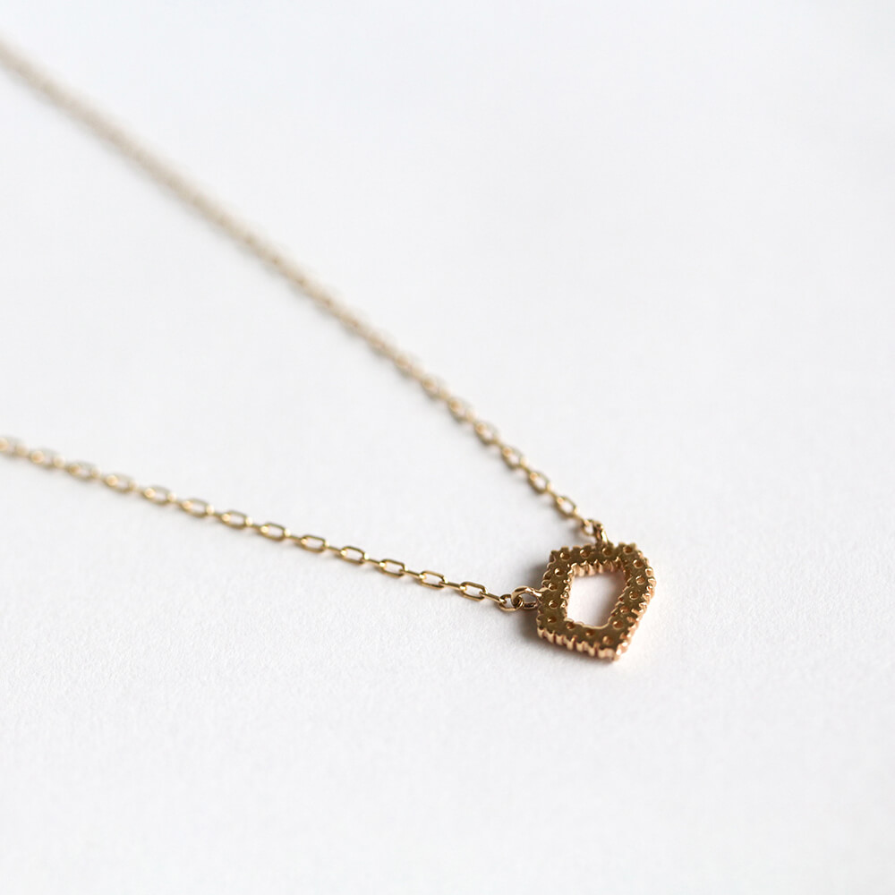 不規則で自由な五角形のモチーフに繊細で細やかなダイヤモンドが敷き詰められたネックレス。