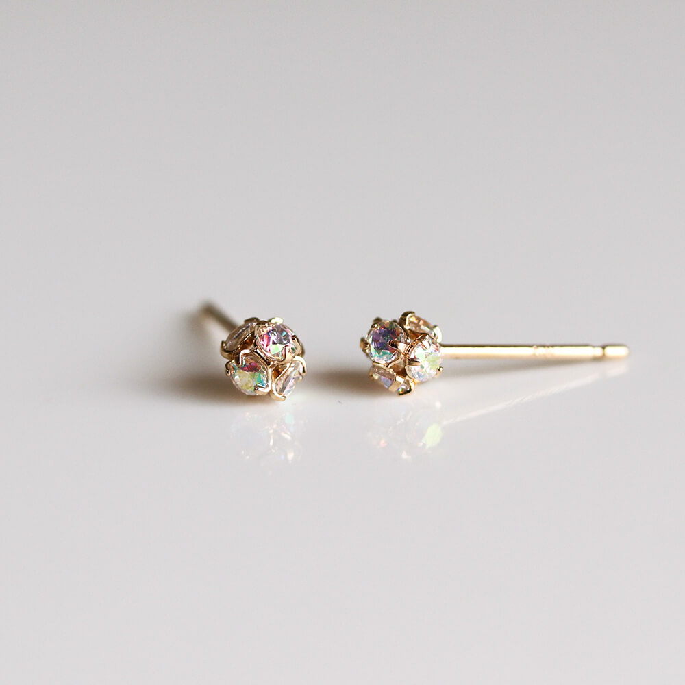 オーロラ色の鮮やかな色彩を見せるキュービックジルコニアピアス。