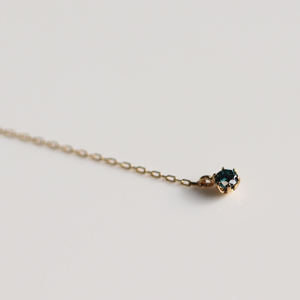 チェーンの先にあしらわれたブルーダイヤは角度を変えて見るたびに心惹かれる輝きを放ちます。